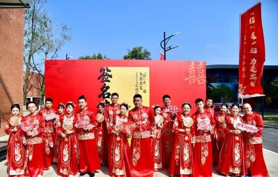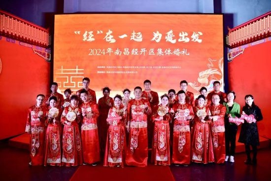 为宏扬中华民间传统文明,推进推陈出新,倡议婚事新办、喜事简办、文明精约的婚嫁新风尚,10月25日,“‘经’在一起,为爱动身”2024年南昌经开区集体婚礼在雷公坳文明体育工业园举行,10对新人喜结连理,在中式婚礼的专属浪漫中镌刻下最美的回想。
