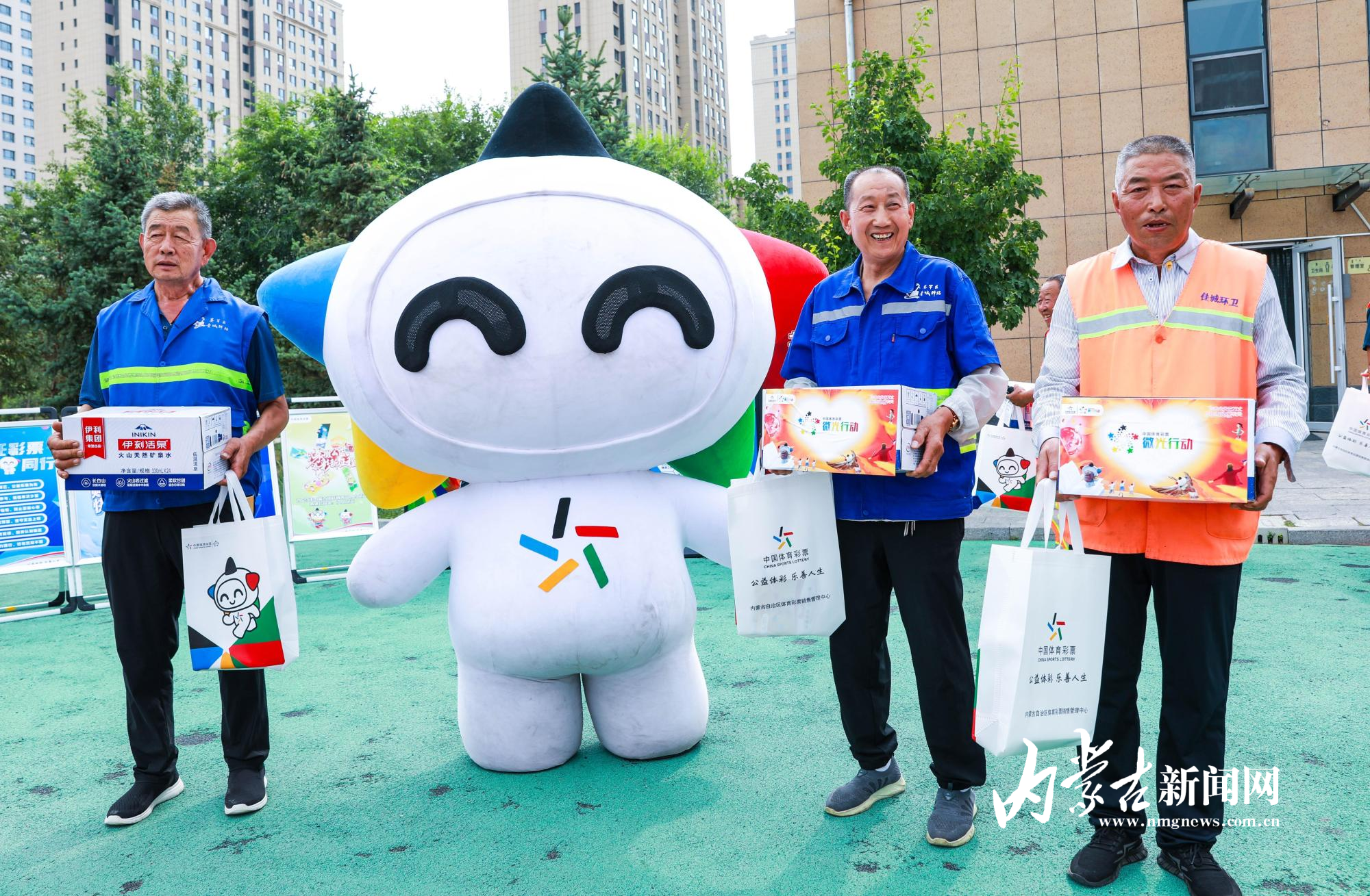 当日,内蒙古自治区财政厅、呼和浩特市财政局、呼和浩特市环卫服务中心等单位和40名环卫工人代表参加活动,内蒙古体彩中心向一线箱。