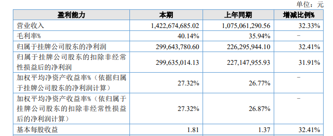 去年,百菲乳业依然保持了增长态势。据其年报,2024年,百菲乳业的毛利率进一步增至40.14%,实现营业收入14.23亿元,同比增长32.33%;归属于挂牌公司股东的纯利润是3.00亿元,同比增长32.41%。与2021年相比,营收规模、净利润都近乎翻倍。