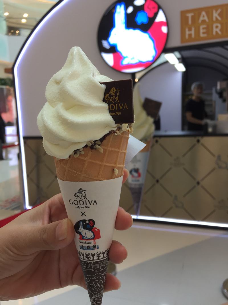 国民奶糖大白兔和比利时巧克力品牌GODIVA联手推出的冰淇淋,55元一支。
