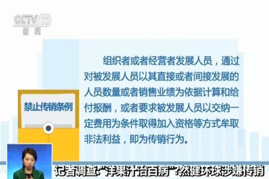 那么,涉嫌传销如何担责?我们的祖国法律和法规如何规定?涉嫌境外执法和监管又有何困难呢?法律专家岳屾山表示, 像这种以销售果汁为名,其实是拉人头挣钱的基本就是一种传销行为。传销并不是真正需要销售产品,而是根据拉人头,根据层级确认收入。情节严重就会触犯刑法。在我国以推销商品为名,要求参加者缴纳费用或者购买商品服务这样的形式,并按照一定的层级直接或者间接发展成员数量作为计酬或者发钱的依据,引诱或胁迫参与者参加扰乱社会经济秩序的传销行为,将处以五年以下有期徒刑或者拘役,并受处罚金,情节严重的处五年以上有期徒刑并处罚金。这里要注意的是,我们的祖国针对传销的处罚是针对领导者和组织者,在传销中承担策划、发起、宣传、培训等的人员,或者对扩大组织有直接间接作用的人员。一般来说传销参与人员在30人以上,而且层级在三级以上的,就可以对其组织者追究刑事责任了。现在有些传销是从境外传进来的,我们要看他是否在境内实施了传销活动,如果有则将追究责任,如果指挥的人在境外,还将联合国际刑警一起展开调查追责。